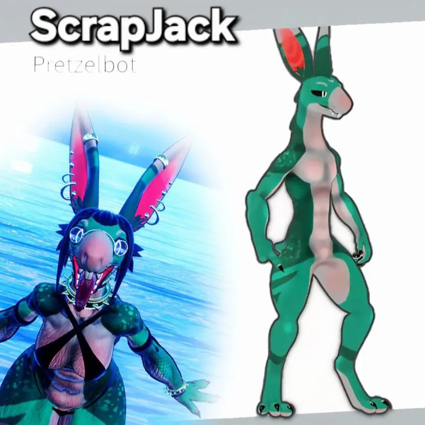 Scrappy long jackrabbit creature possibly mixed with some sort of reptile or gremlin in general. Either way he's an adorable weird guy with a lot of clothing and body shapes.