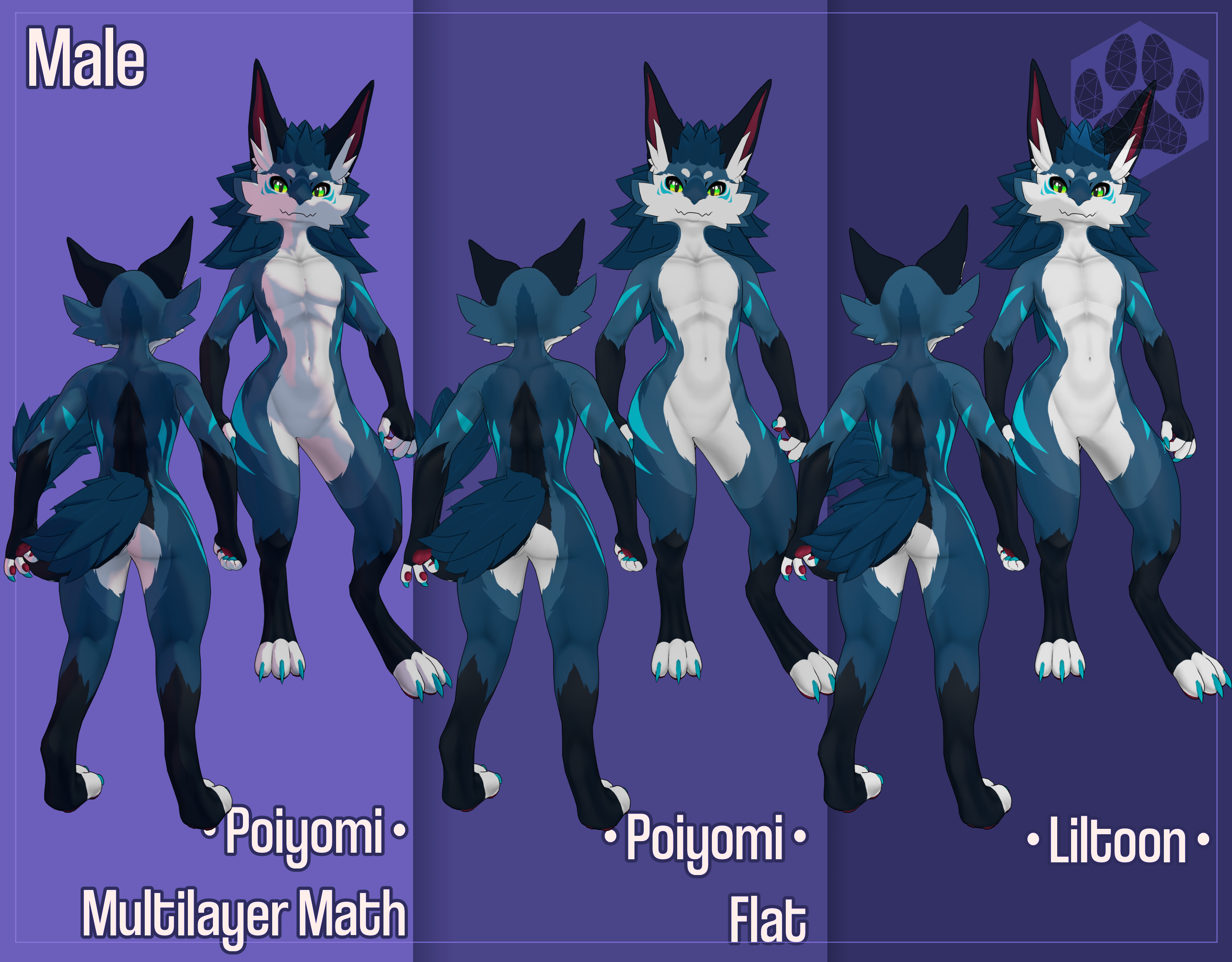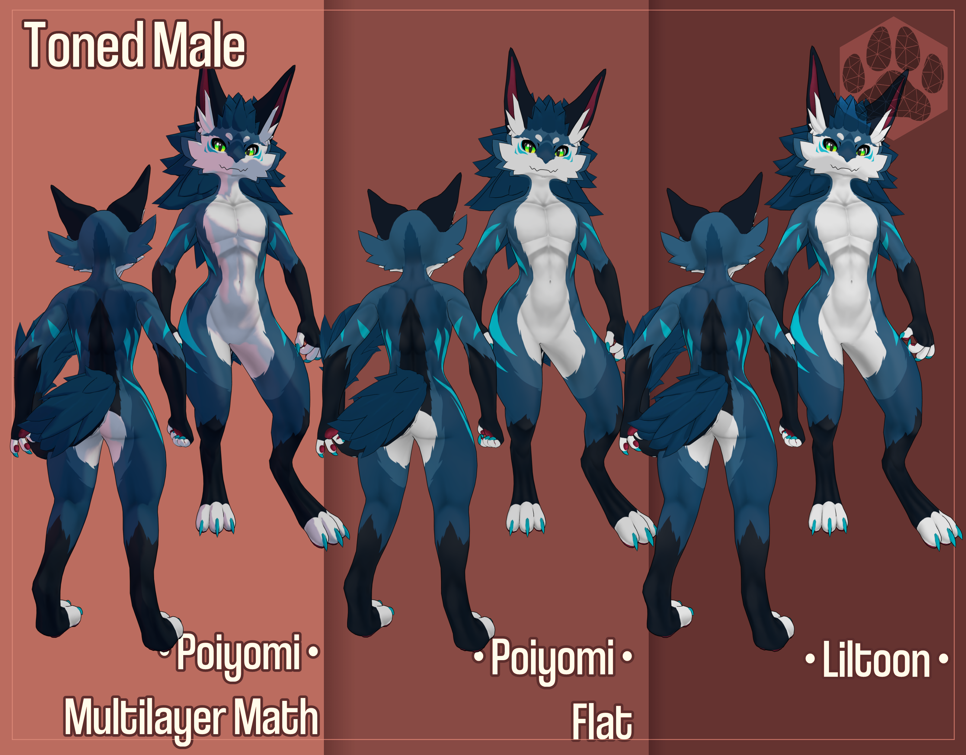 This shading pack contains 3 variations, Male, Toned Male and Female. Each one supporting 3 different shader options.