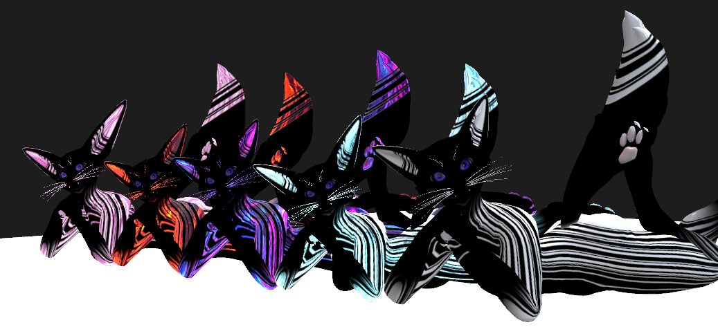 Can use any Shaders, Poi Toon 8.0 with realistic shading is used in example photos. This texture is made to work with MATCAPS you don't have to though.