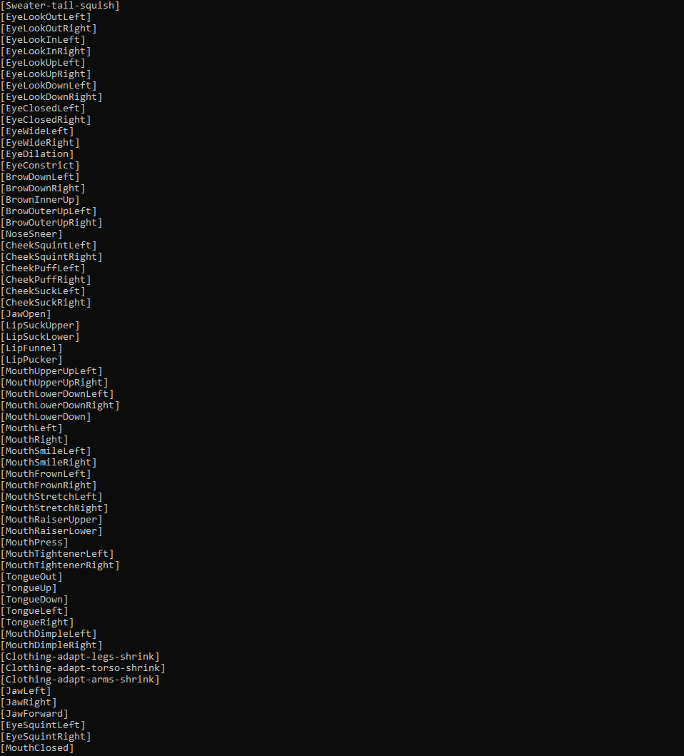 Blend shapes: (right click on image and open image in new tab to view more closely)