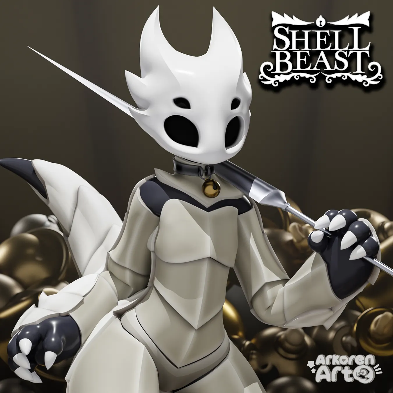 Shellbeast is a reptile-like bug avatar for VRChat, compatible with both PC and Quest! It features fully modular shell armor, Needle sword, "Shackle" collar with jingling bell, and more. View all the features and details below!