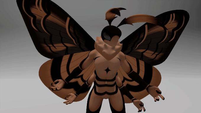 The Fae Moth is allowed for pose and anatomical reference for 2d artists.
