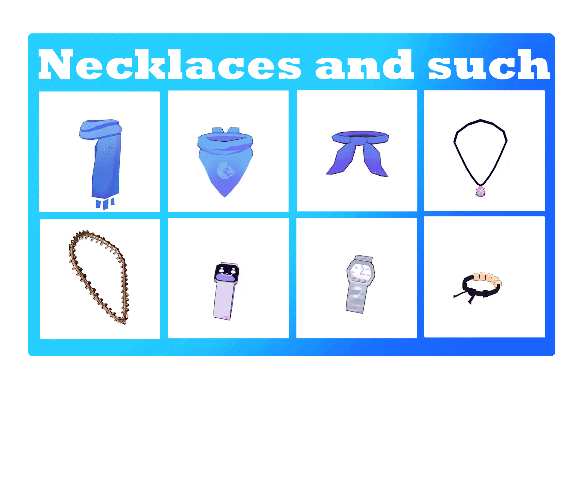 Of course, many similar accessories can be found online, but the Accessory Pack streamlines the process tremendously into a drag and drop that will work with all outfits, as well as being in the same style as all of my other avatar bases.