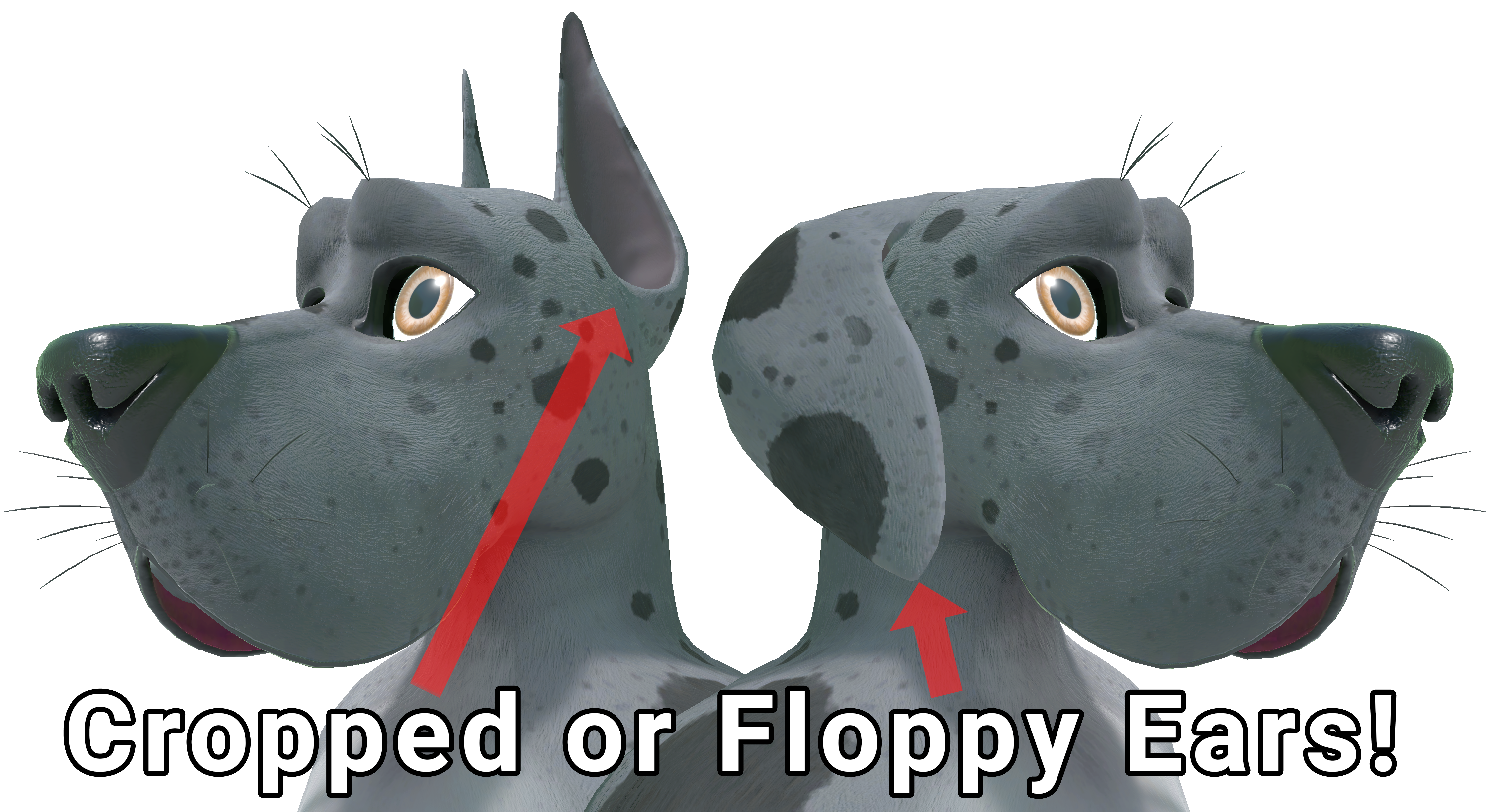 • Natural(Floppy) or Cropped(upright) ears with prefabs for each style.