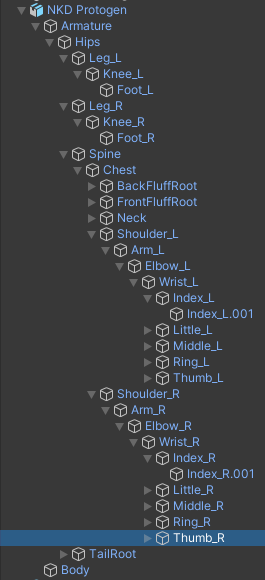 If you get some errors that it cannot find something in your avatar, you probably renamed the bones from the original protogen model. Here's a screenshot of the original hierarchy: